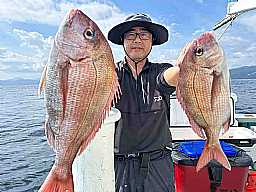 真鯛 1.1-1.2キロ 1人 2枚 今日は潮スムーズに流れましたが食い渋く苦戦しました
